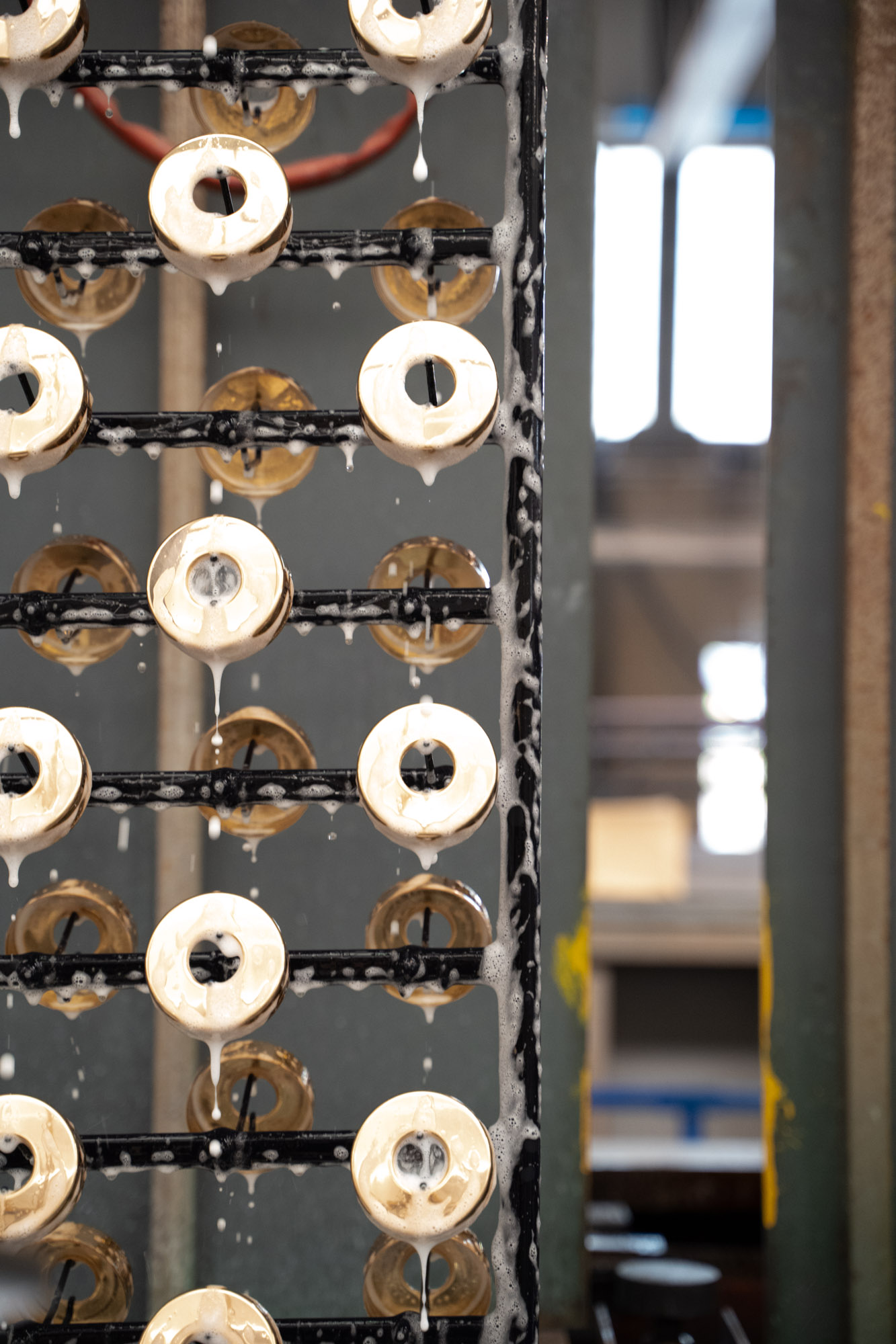 Costruito nel 2001, il nostro impianto galvanico in linea è una struttura all’avanguardia con una capacità produttiva di circa 1000 telai al giorno. Questo impianto completamente automatico è dotato di un sofisticato sistema PLC per il riconoscimento dei frame, assicurando precisione e uniformità nel processo di galvanizzazione.